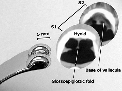 喉頭蓋谷の粘膜との接地面積を増やし、効果的に粘膜の張力を上昇させて喉頭蓋を挙上します。